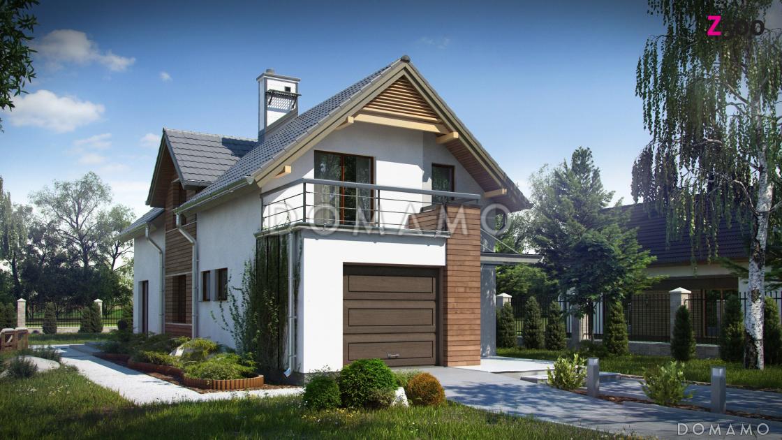 Проект узкого, но длинного особняка понадобиться тем, у кого не совсем стандартный участок. Такой дом станет украшением земельного надела, расположенного в городе или за его чертой, в нем могут комфортно проживать до 5 человек. Светло-серые стены дополнены темными вставками на некоторых стенах, перилами балкона, входными дверями и гаражными воротами. На первом его этаже пристроен гараж, в него можно попасть сразу с тамбура, вторая дверь с коридора ведет в холл, из которого можно посетить санузел или кухню-столовую, она имеет два прохода в гостиную. Поднимаясь на второй этаж по удобной пологой лестнице, попадаешь в холл, из него три двери ведут в спальни, а две — в санузел.