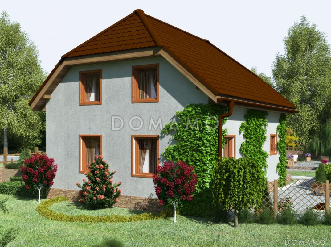 Загородный коттедж с мансардным этажом создан для размещения семьи из 3-х – 5-ти человек. При всей экономичности постройки он удобен для отдыха и работы, встречи гостей и делового общения благодаря особенностям внешней архитектуры и продуманной планировке внутреннего пространства: