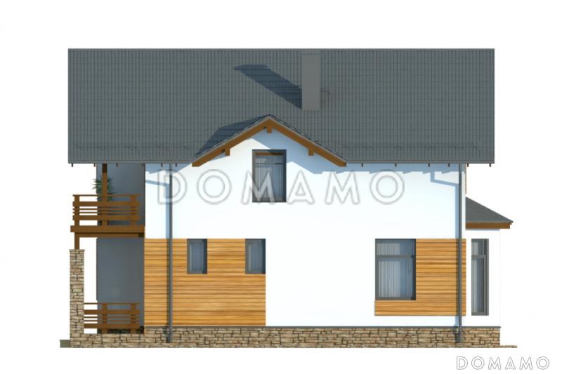 Большой двухэтажный дом с типичным для современных проектов четким разделением жилой и функциональной зон. Особенностью же является совмещенное пространство кухни и гостиной, со светлым эркером, расположенным в кухонной зоне — великолепный обзор вместе с естественным светом и теплом. Жилая зона состоит из жилой комнаты на первом этаже и трех спален с кабинетом на второй, последний имеет выход на просторный балкон, где можно удобно разместить столик и другую летнюю мебель для отдыха.