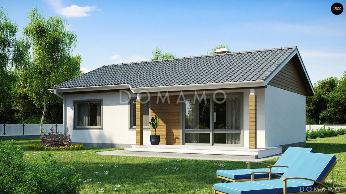 Проект компактного одноэтажного дома из кирпича с тремя спальнями и небольшой крытой террасой / 1 Проект компактного одноэтажного дома из кирпича с тремя спальнями и небольшой крытой террасой / 2