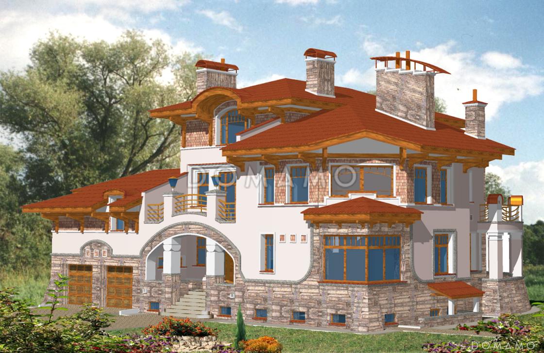 Оригинальная усадьба в стиле модерн подойдет для строительства роскошного загородного дома на большом участке. В доме с шестью спальнями разместится семья из нескольких поколений.
