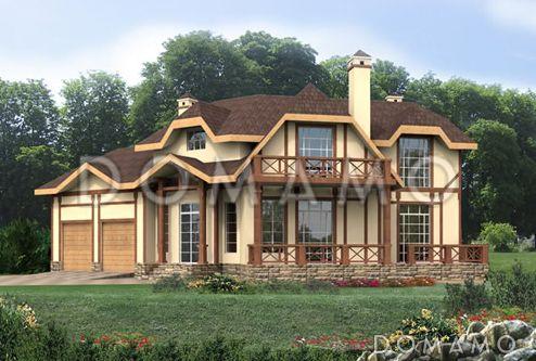 Просторный особняк с пятью спальнями и гаражом подойдет для комфортной жизни семьи из пяти-шести человек. Экстерьер украшают фахверковые элементы: деревянные рейки и балки, а также массивные ограждения террасы и балкона.