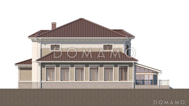Главные характеристики данного проекта – комфорт, просторность и соразмерность. Архитектура дома вызывает ощущение монументальности, продуманности и комфорта. Благодаря отделке под кирпич с рустами, тягами и наличниками с классическом стиле дом выглядит основательно и презентабельно. Скатная крыша создает привычный образ практичного жилого дома, рассчитанного на северный климат. Украшением фасада и планировок становятся выступающие на всю плоскость фасада эркеры.