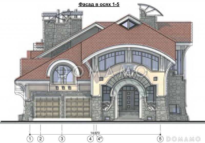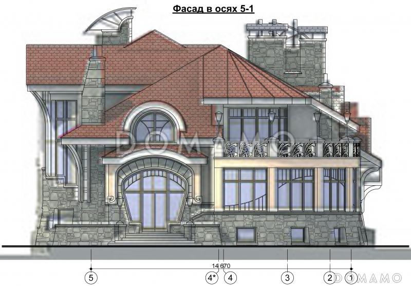 Проект особняка в стиле модерн для комфортабельной жизни за городом семьи из 4-5 человек. Сложный экстерьер обращает на себя внимание: полукруглые окна, многоуровневая крыша сложной формы, эркеры, затейливые ограждения балконов и террас.