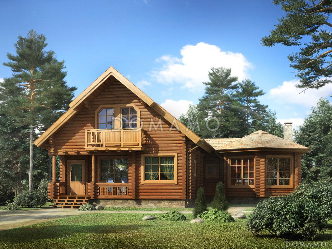 Проект уютного бревенчатого коттеджа, который отлично подойдет для проживания в нем семьи из трех – четырех человек. Постройка выполнена в стиле классической русской избы, а ее ключевой особенностью является шестигранная веранда-столовая, которая вынесена за основные габариты постройки. С жилой частью дома ее соединяет тамбур, откуда можно выйти на большую открытую террасу. Компактная планировка делает этот коттедж максимально вместительным. На первом этаже расположена кухня – столовая, просторная двусветная гостиная с местом под камин, а также гостевая комната. Мансардный этаж полностью отведет под три спальных комнаты, в двух из которых имеются выходы на небольшой балкон.