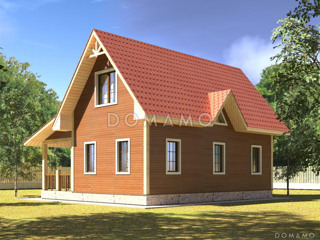 Имеется прихожая, что препятствует проникновению холодного воздуха в дом зимой. В кухне есть печь, с отдельным дымоходом. В гостиной - камин. В мансарде - две спальни. Скаты кровли начинаются от отметки 1,0м, что позволяет ставить кровати и кресла вплотную к стене.
