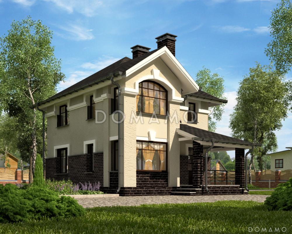 Проект элегантного коттеджа, выполненного в европейском стиле, который станет отличным местом для проживания небольшой семьи из трех-четырех человек. Ключевыми особенностями постройки являются необычные декоративные элементы, используемые в облицовке здания, а также большие окна. На первом этаже дома расположена гостиная с выходом в кухню-столовую, а также хозяйственные помещения. Второй этаж включает в себя две больших спальных комнаты. Также проектом дома предусмотрено наличие небольшое крытой террасы у входа, где хозяева смогут разместить мебель для отдыха.