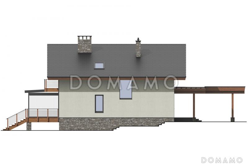 Входная группа и место для парковки автомобилей под единой плоской кровлей. Это очень удобно для перемещения между зонами, особенно в случае дождя.