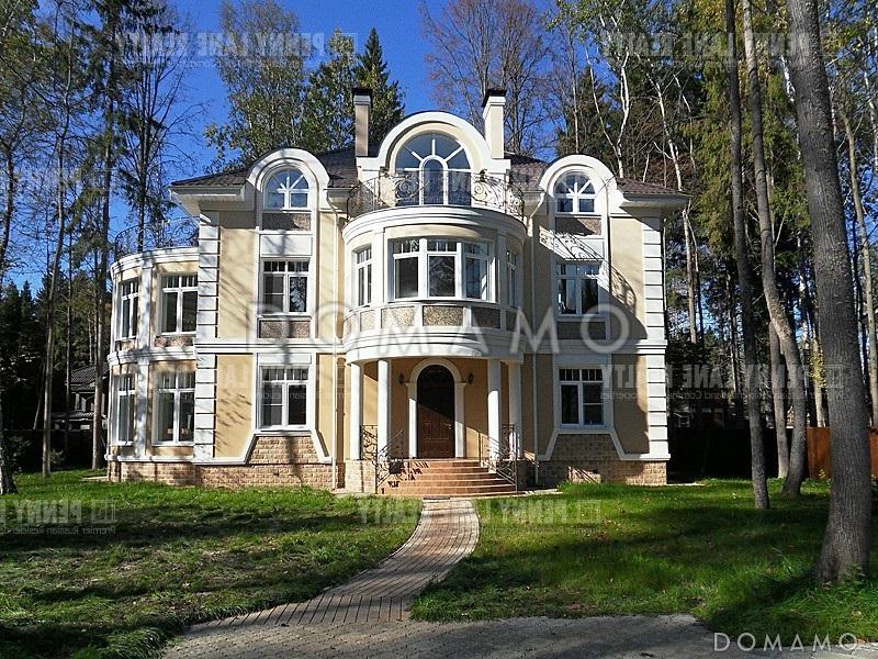 В композиционно-стилевом решении коттедж активно заимствует элементы стиля "Модерн", такие как отделка поясов и отдельных фасадов глазурованной плиткой. Динамично изогнутыми линиями оконных проемов, фронтонов и вставок.