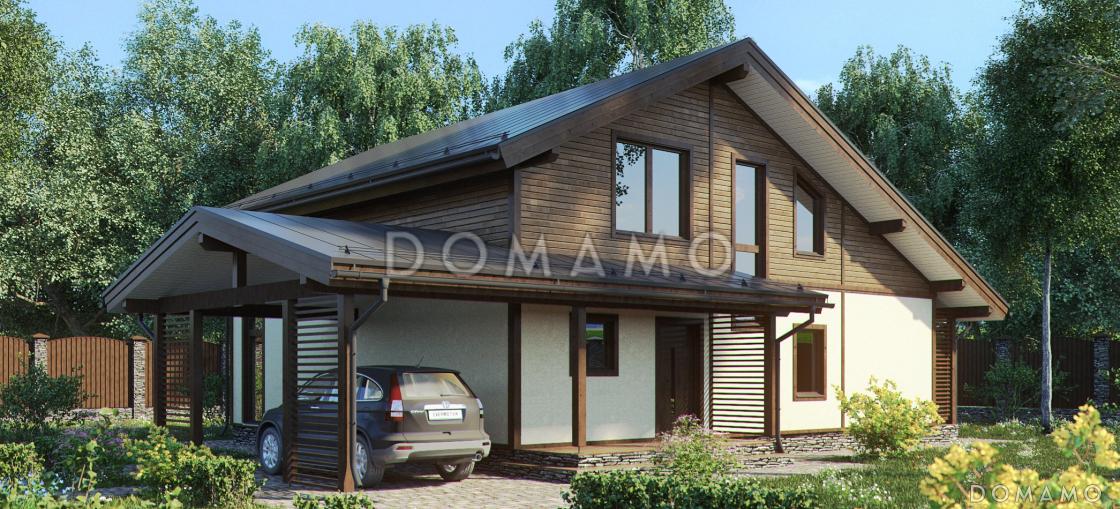 D571 Проект дома в стиле шале с сауной и навесом для автомашины