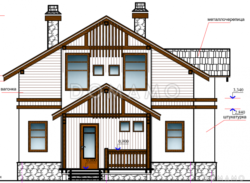 Двухэтажный домик с мансардной крышей станет удобной дачей или местом круглогодичного проживания семьи из 3-х — 7-ми человек. Оформление «под дерево» дает ему особое очарование и близость к природе, панорамные и мансардные окна обеспечивают естественное освещение комнат. Строительство из каркасных конструкций ускоряет процесс возведения и делает дом энергоэффективным, а планировка предусматривает максимальное использование площади: