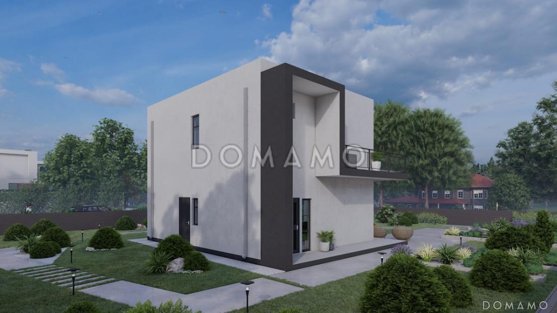 Компания Domamo предлагает проект двухэтажного коттеджа в стиле хай-тек, адаптированный для сейсмозоны D6447. Общая площадь - 119 м2, размер - 10.5х8.7 м. Фундамент - монолитная ж/бетонная плита, кровля - полимерная мембрана, внешняя отделка - мокрая штукатурка. Для заказа проекта или внесения изменений свяжитесь с нами с помощью форм обратной связи на сайте или по телефону +7 (343) 357-92-70.