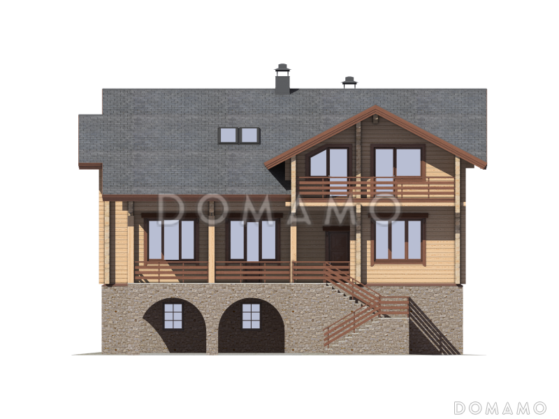 Проект роскошного трехэтажного загородного дома, который станет идеальным местом для постоянного проживания большой семьи из пяти-шести человек. Коттедж отделан в минималистичном стиле при помощи светлой и темной деревянной вагонки. Дизайн экстерьера выделяется отделкой цоколя натуральным камнем. На территории цокольного этажа расположен большой гараж с парковочными местами для двух машин, тренажерный зал, сауна с раздевалкой и помывочной, а также хозяйственные помещения. Первый этаж включает в себя большую гостиную с выходом в столовую и кухню, две спальные комнаты и просторную террасу. На втором этаже – большая комната отдыха, где при желании можно разместить бильярдный стол или настольный теннис, три спальни, в двух из которых обеспечены выходы на балконы.