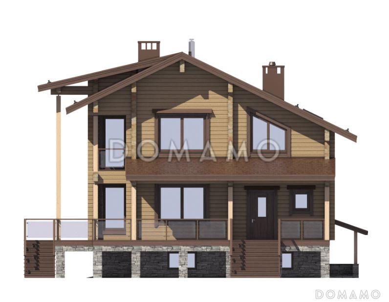 Проект трехэтажного особняка, который станет идеальным местом для постоянного проживания большой семьи из пяти-шести человек. Коттедж отделан в минималистичном стиле при помощи светлой и темной деревянной вагонки. Дизайн дополнен застекленными оградами на балконах каждого этажа и панорамными окнами. На цокольном этаже дома расположен большой тренажерный зал, сауна и хозяйственные помещения. Первый этаж занимает просторная гостиная, объединенная с кухней-столовой, две гостевых комнаты и гардероб. Здесь также находится терраса, огибающая весь этаж, общая площадь которой – 71 м. Мансарду полностью занимают три спальные комнаты, в двух их которых предусмотрены выходы на балконы.