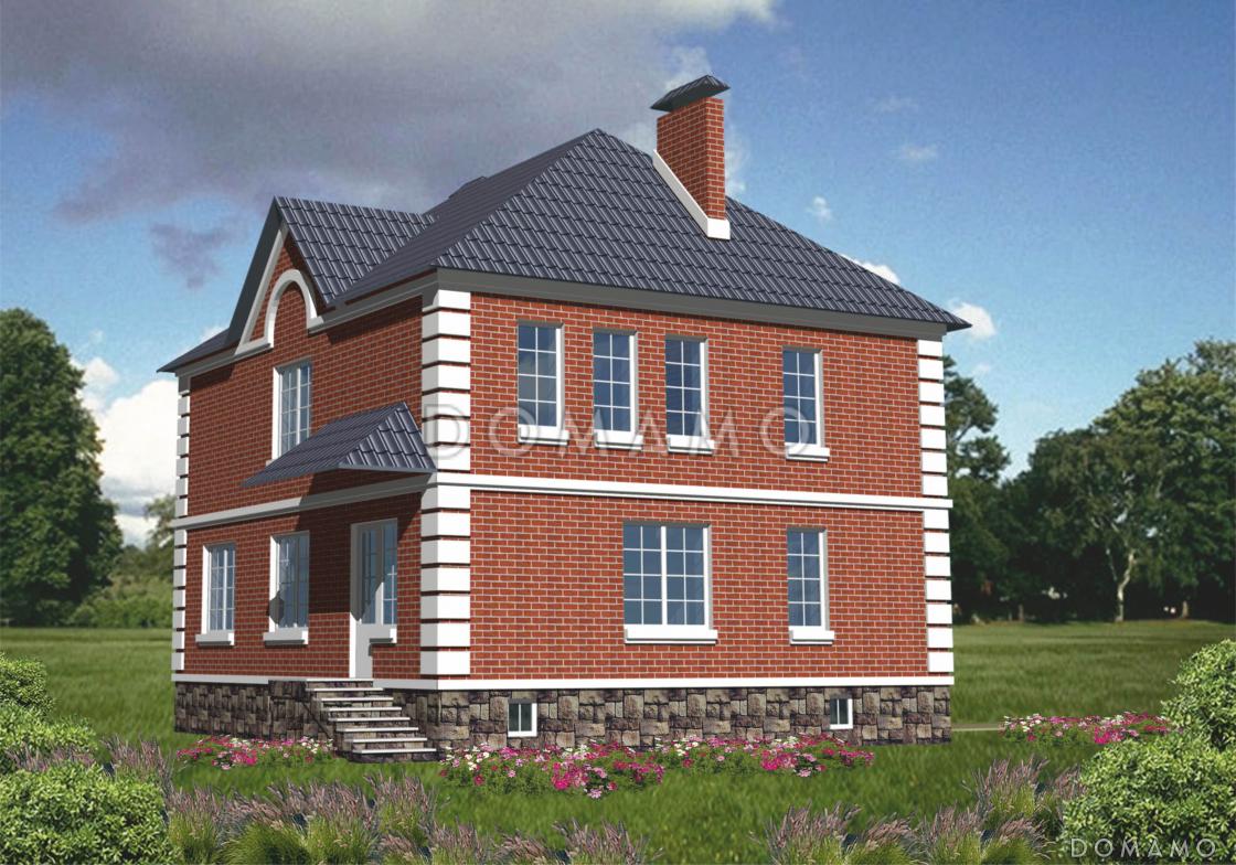 Добротный четырехуровневый коттедж с шестью спальнями подходит для семьи из 5-8 человек. Аккуратный экстерьер представляет собой облицованные ярким кирпичом стены с декоративными рустами по углам.