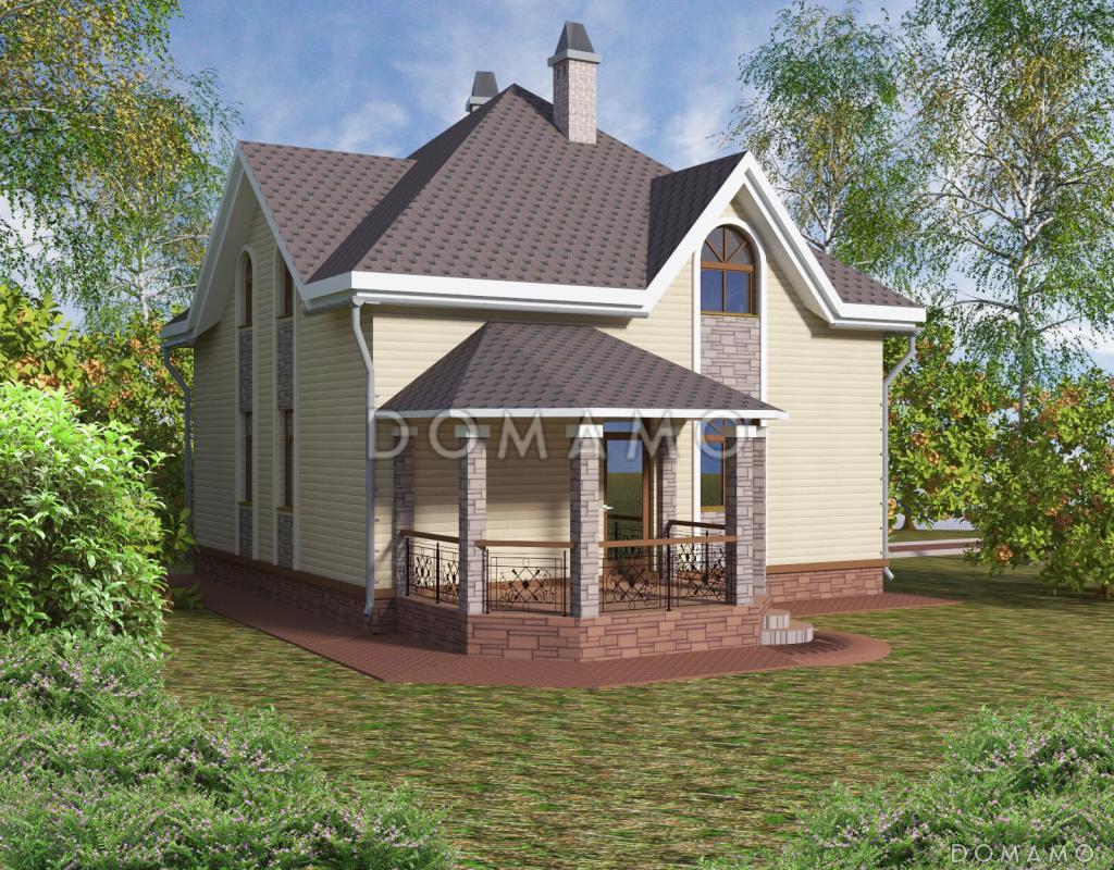 Сравнительно небольшой по общей площади, но очень практичный с точки зрения планировки дом в стиле польских и чешских усадьб. Оригинальным и удобным элементом является угловое крыльцо с отдельными входами в дом и в котельную. Большую часть пространства первого этажа занимает кухня-гостинная, из которой есть выход на просторную террасу. Имеется гостевая спальня, которую можно использовать и как кабинет. На второй этаж ведет компактная лестница, под которой расположены шкафы. На верхнем этаже — три спальни, хозяйская спальня имеет свою гардеробную. На каждом этаже есть свой санузел. Виды мансарды (с белыми стенами) показаны для спальни 19,0м2.